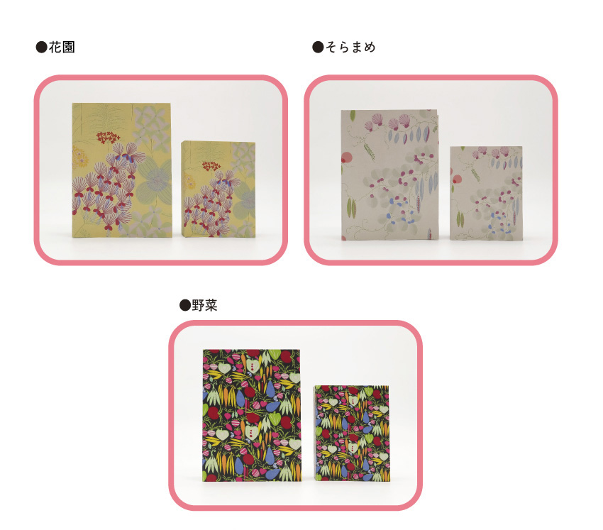 「野菜」「そらまめ」「花園(※品切れ中)」各2サイズ 計6種