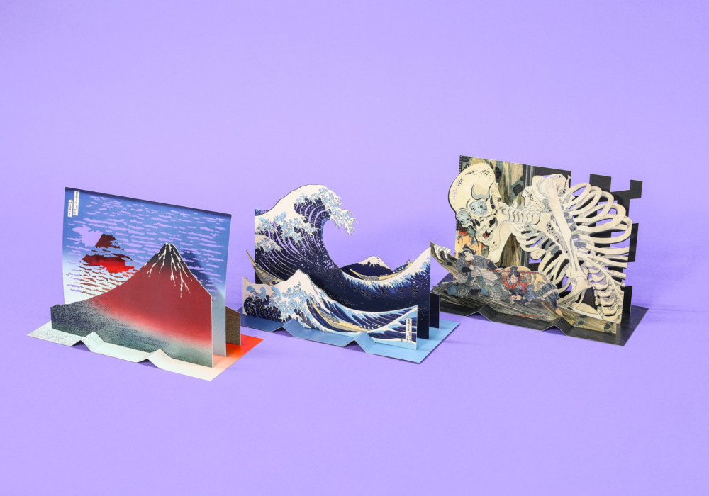 カードをレイヤーのように重ねると、新しい浮世絵の景色が、繊細なレーザーカットとともに立体的に浮かび上がります。